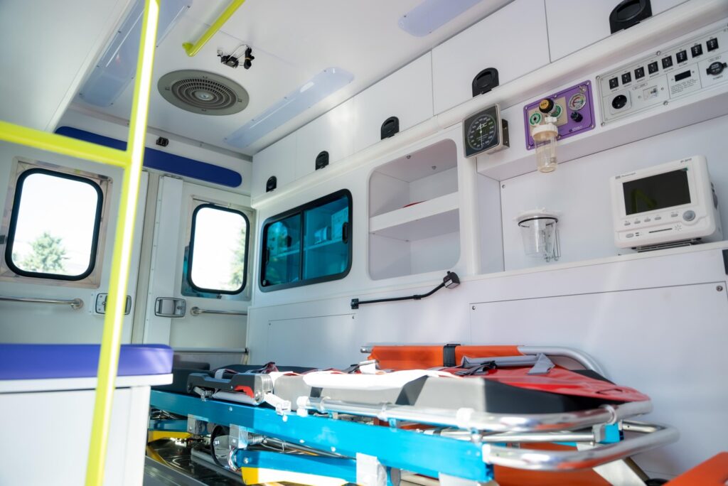 Автівки обладнано всіма необхідними засобами, що дозволяють надавати життєво необхідну допомогу пацієнтам під час медичного транспортування.