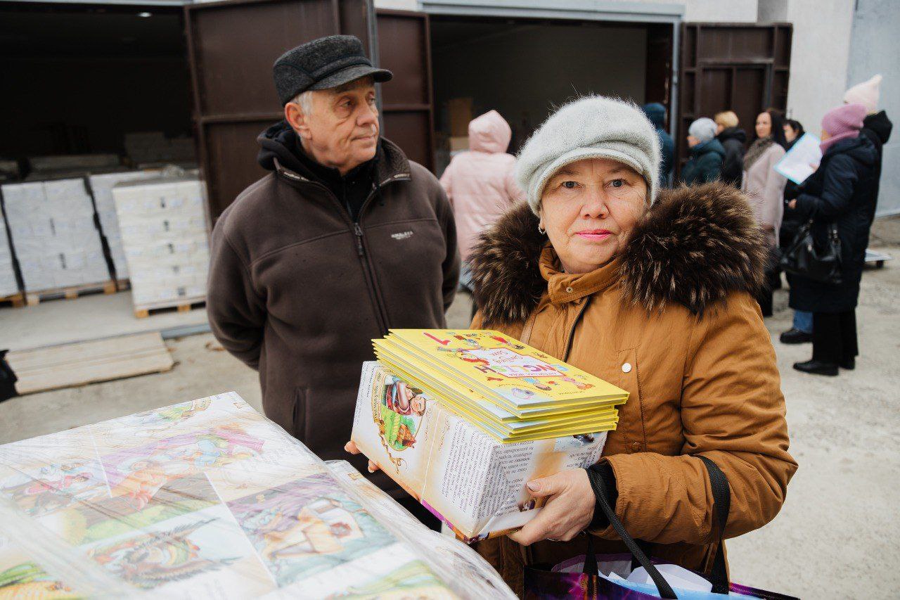 Цінний книжковий вантаж отримала заступник директора однієї зі спеціальних шкіл Дніпра пані Наталія. Загалом у закладі навчається понад 240 дітей. З них 19 – повністю незрячі.