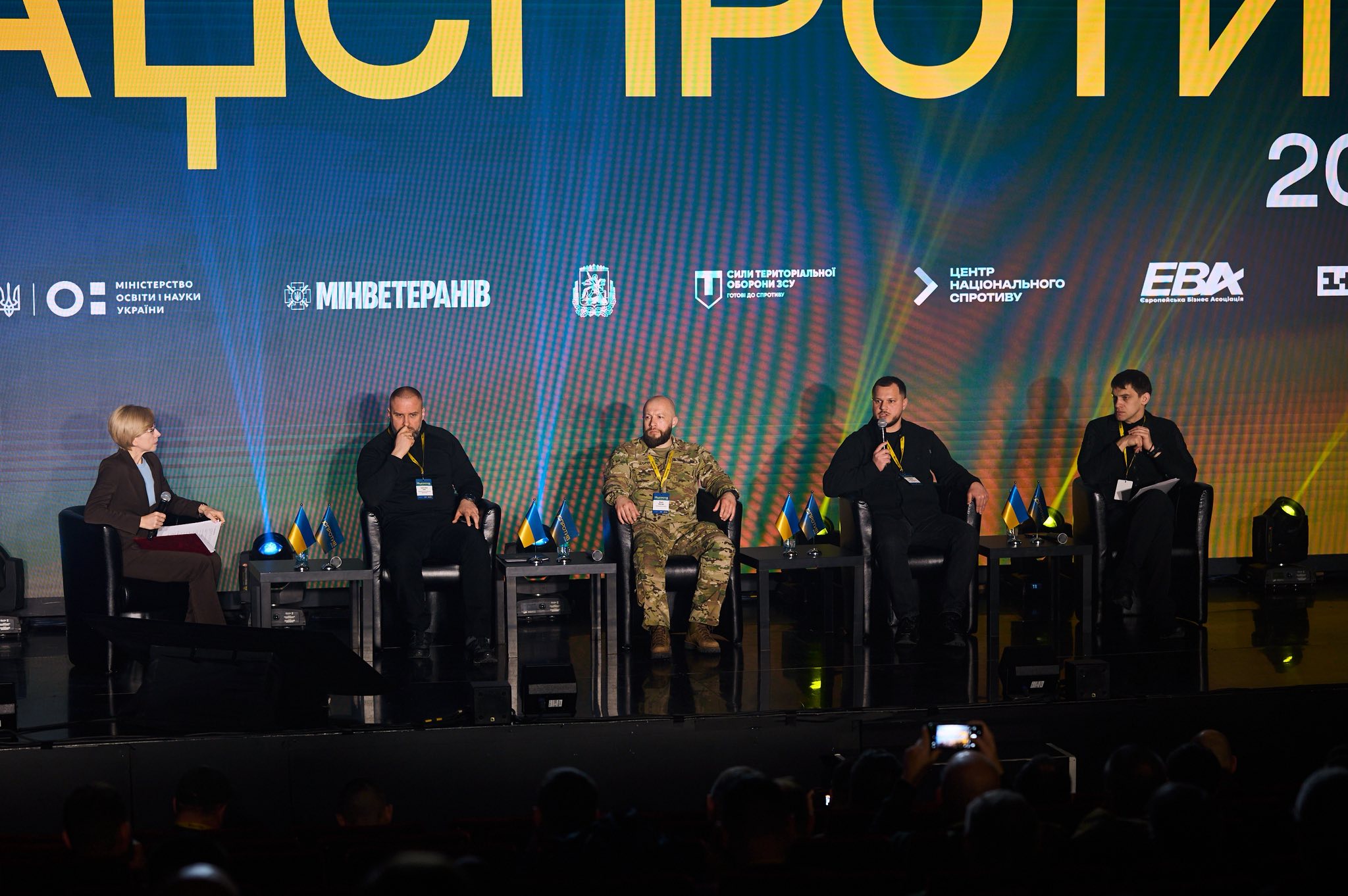 Форум відкрила та модерувала першу панель заступниця керівника Офісу Президента Ірина Верещук, долучилися представники Сил територіальної оборони, командування Третього армійського корпусу та начальники Закарпатської, Запорізької та Харківської областей, які мають розвинуті системи центрів нацспротиву.