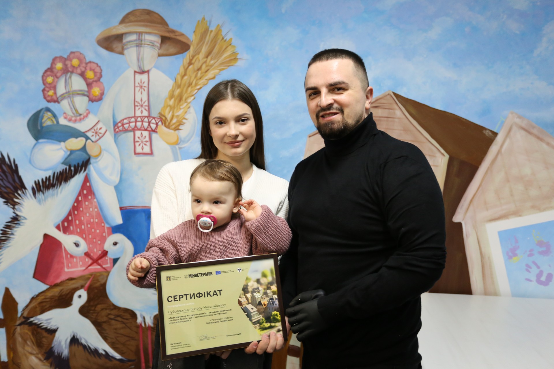 Вручення сертифікатів на житло стало можливим завдяки Президенту України Володимиру Зеленському, Кабінету Міністрів України, Міністерству у справах ветеранів України за фінансової підтримки Європейського Союзу в рамках реалізації інструменту Ukraine Facility.